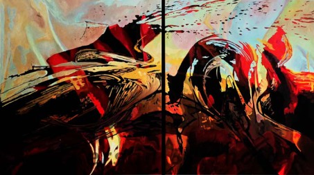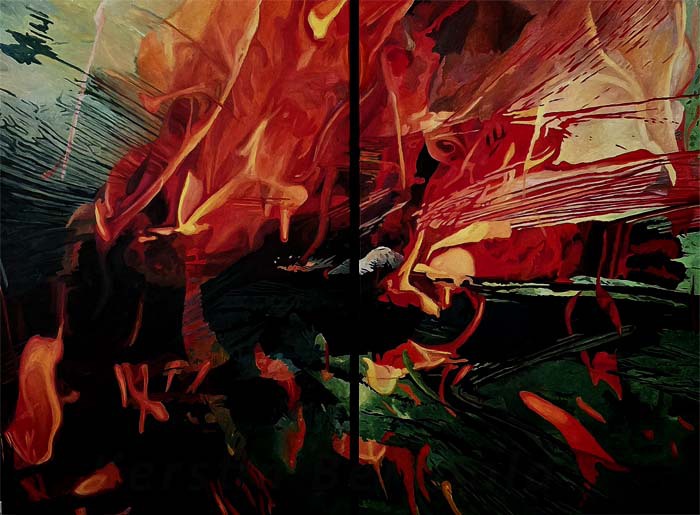 two parts, 2 x 60x90 cm, Oil on Canvas, partly worked as a relief