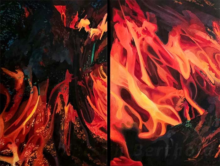 two parts, 2 x 60x90 cm, oil on canvas with a relief surface