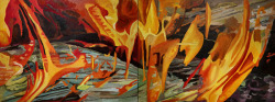 three parts, 3 x 40x140cm, Oil on canvas with faux fur edge