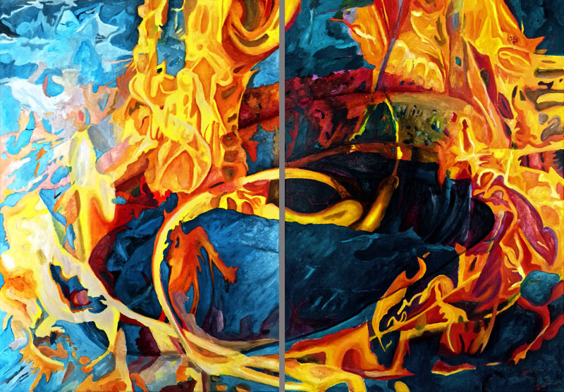 two parts, 2 x 60x90 cm, Oil on canvas with a relief surface