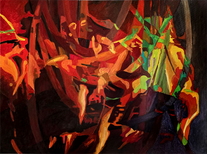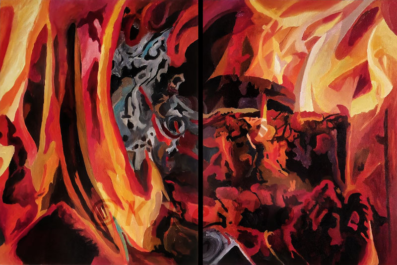 two parts, 2 x 50x70 cm, Oil on canvas with a relief surface