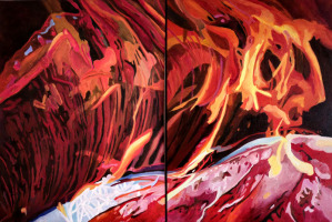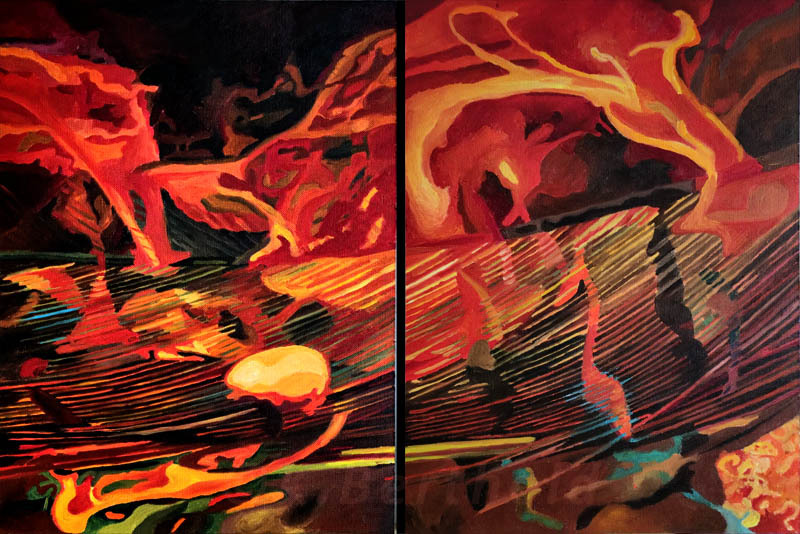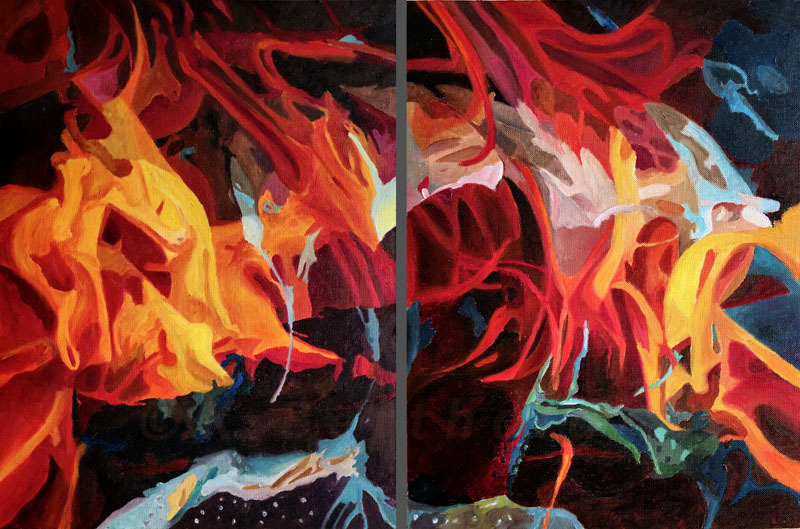 Öl auf Fabrianopapier zweiteilig je 24 x 32