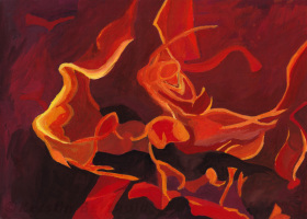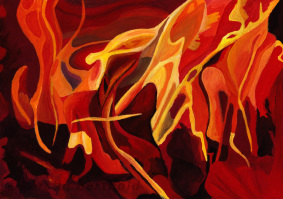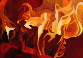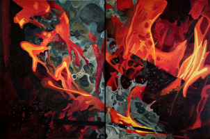 Ausschnitt einer Serie kleiner Feuerportraits Öl auf Fabrianopapier.
