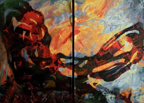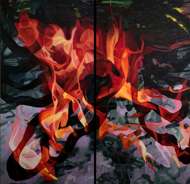 In dieser, aktuellen Serie verändert sich die Rolle des Feuers grundlegend. Die Flammen agieren nicht mehr im kontroversen Spannungsfeld. Das Feuer erscheint als gerichtete Kraft, als Bewegung mit
