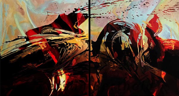 zweiteilig, 2 x 60x90 cm, Öl auf Leinwand, reliefiert